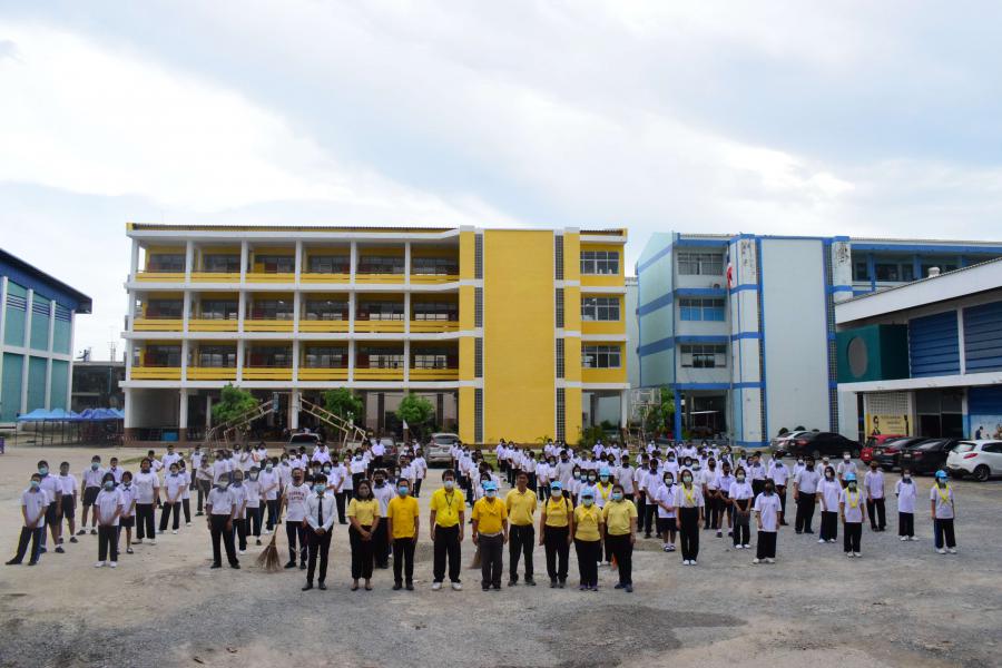 ผู้บริหาร คณะครู บุคลากร และนักเรียนโรงเรียนเทศบาล ๑ บ้านสามพราน(นครสาระผดุงวิทย์) พิธีลงนามถวายพระพรชัยมงคลสมเด็จพระเจ้าอยู่หัว S:0