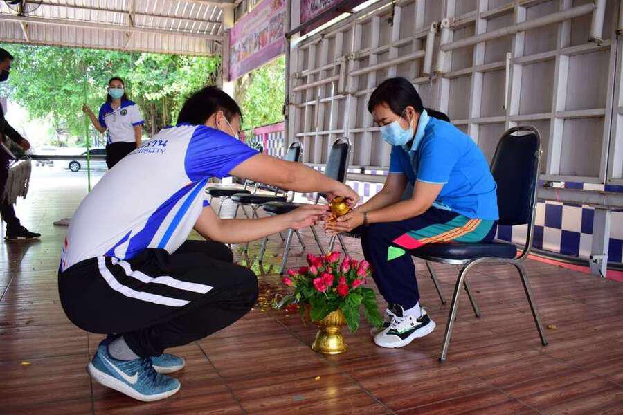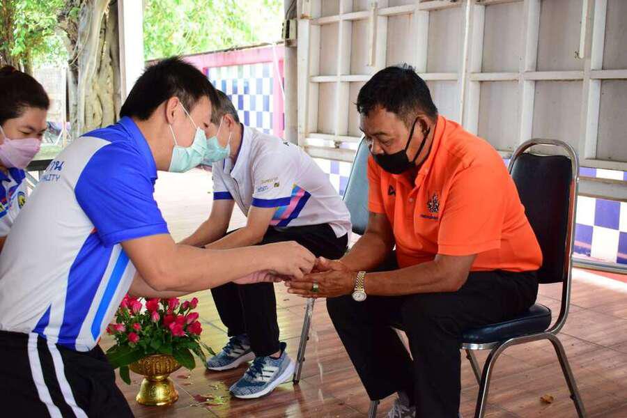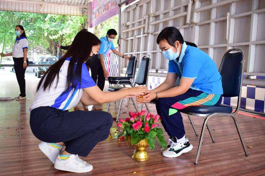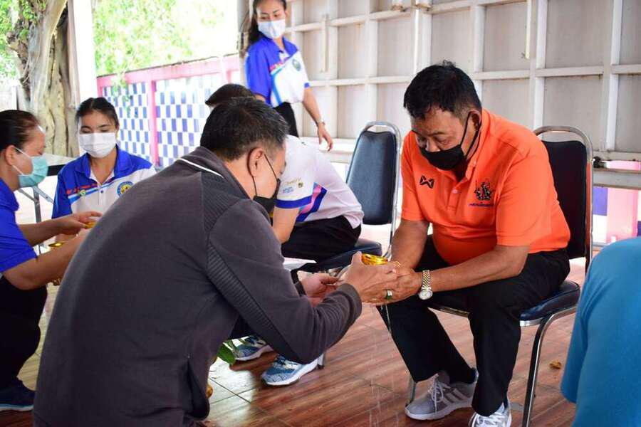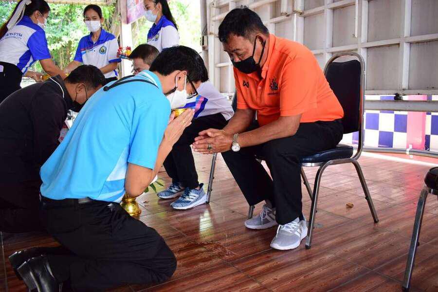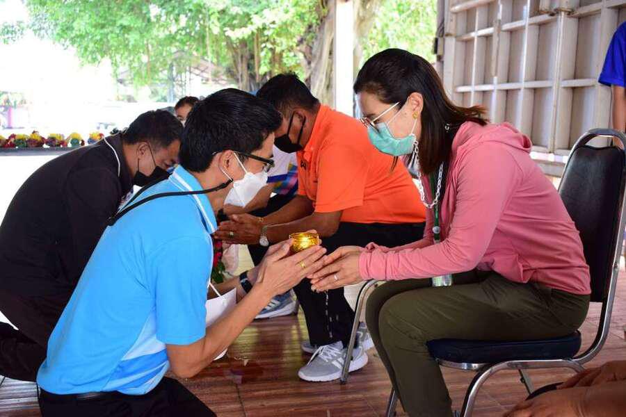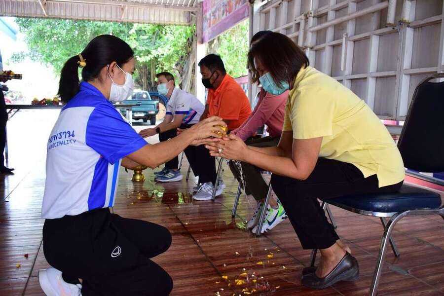 รดน้ำขอพรผู้บริหารเทศบาลเมืองสามพรานเนื่องในเทศกาลสงกรานต์ ณ เทศบาลเมืองสามพราน