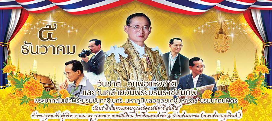 น้อมรำลึกในพระมหากรุณาธิคุณอันหาที่สุดมิได้ ข้าพระพุทธเจ้า ผู้บริหาร คณะครู บุคลากร และนักเรียน โรงเรียนเทศบาล ๑ บ้านสามพราน (นครสาระผดุงวิทย์)